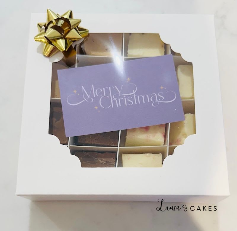 A mixed box of homemade fudge, including the following flavours: